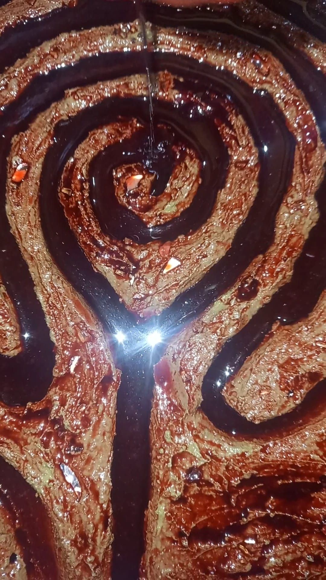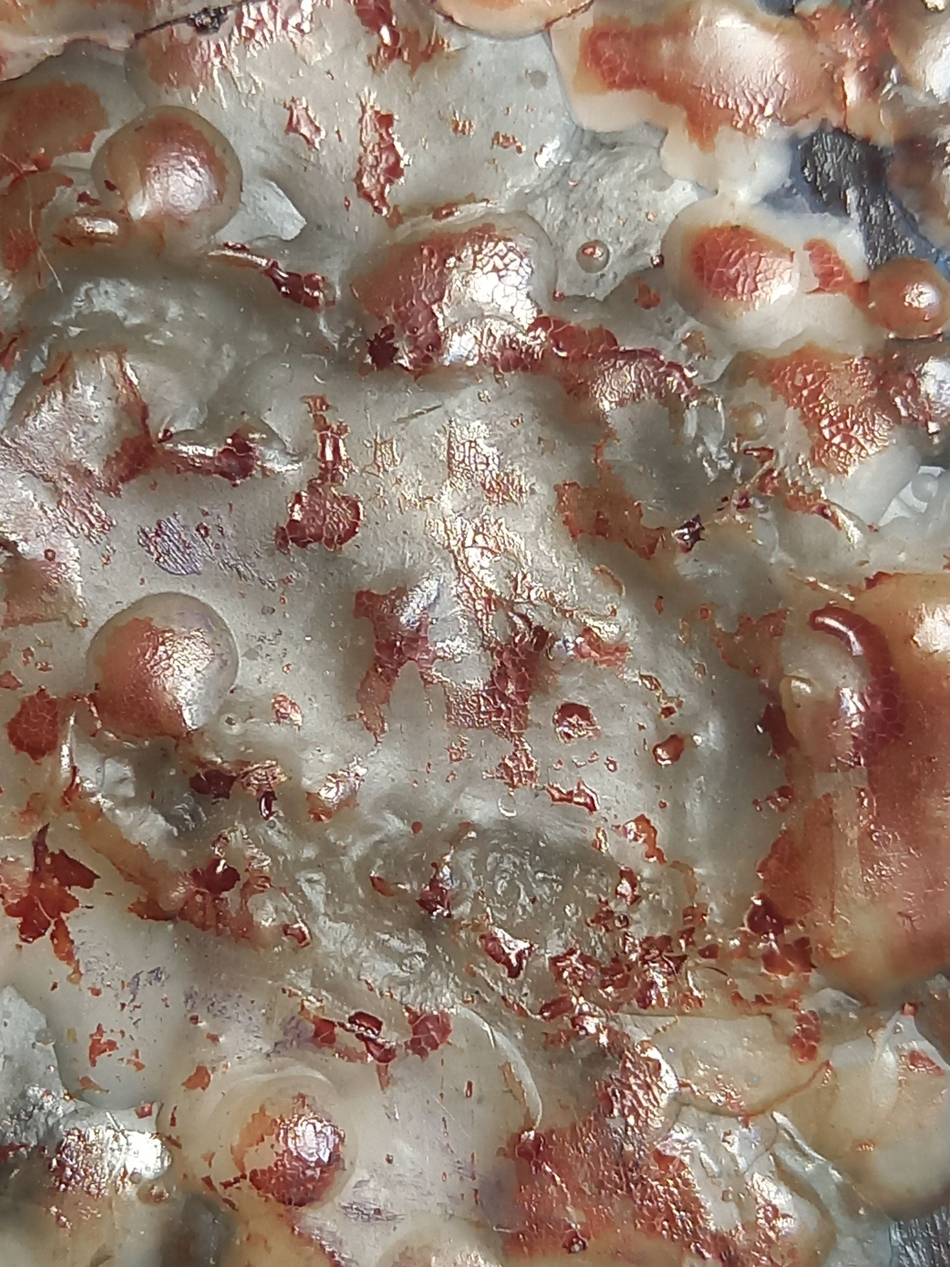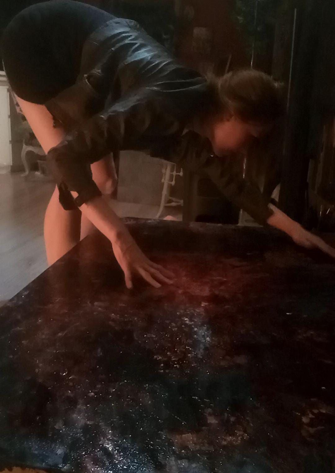 Am besten hat sich angefühlt, dass ich alles bedecken konnte, da ich erst dachte, das Blut würde nicht reichen (normalerweise würde ich auch viel mehr nehmen). Dann die Herzmassage/Abtasten/Handabdrücke ähnlichen Bewegungen. Aber auch der einzelne Tropfen, der an meinem Arm herunter lief, fühlte sich sehr schön an. Es ist einfach so eine krasse Naturfarbe & mit dem Blattgold & Weiß in Kombi sehr schön leuchtend - das ist nicht per Foto/Video einzufangen.... Ich bin immer wieder erfrischt von dieser Leuchtkraft & Farbintensität des Blutes, wenn es frisch bzw noch flüssig ist.