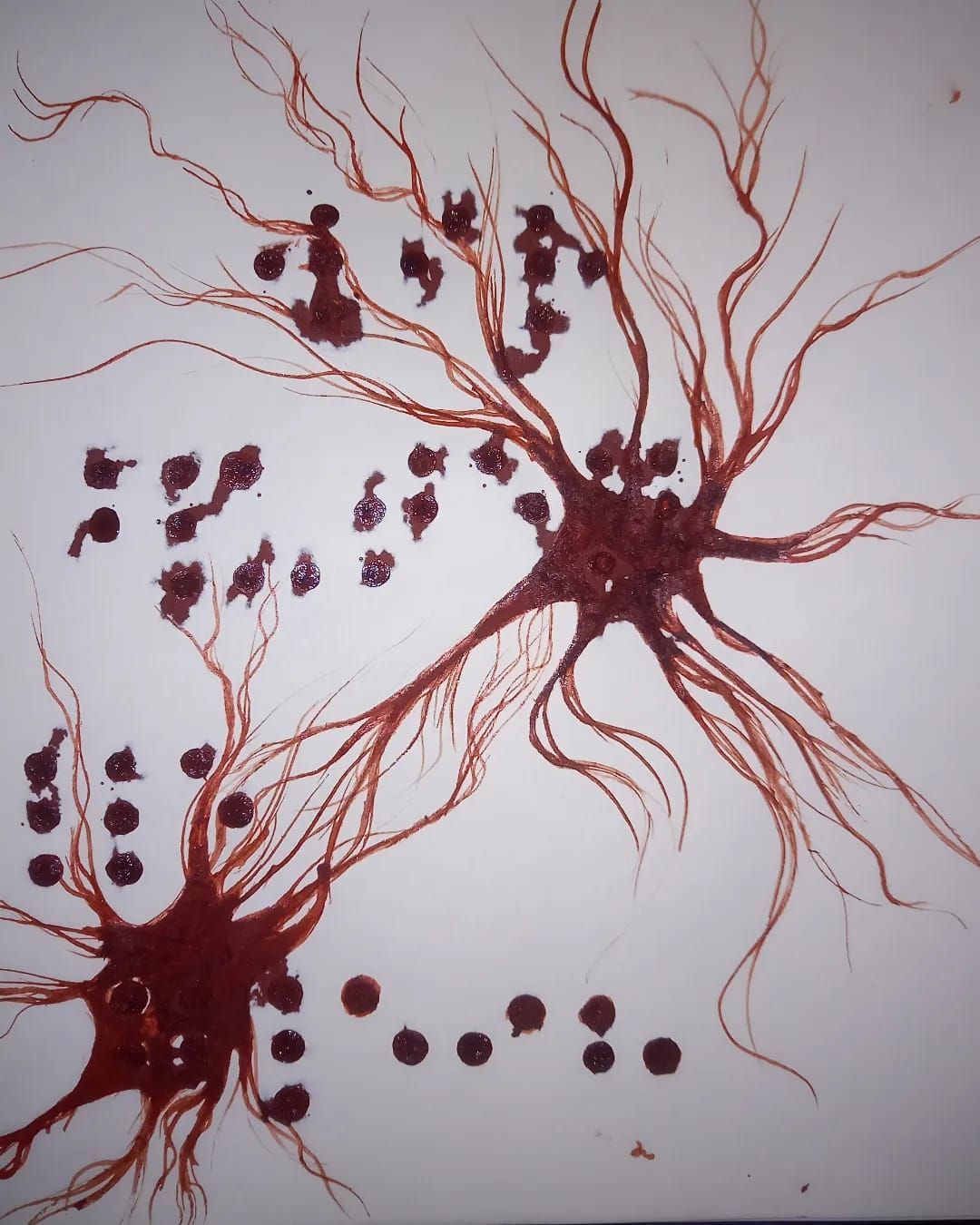 Für das Kunstwerk habe ich wunderschönes Blut eines Rehs nutzen können, welches vom Jäger erschossen worden war.