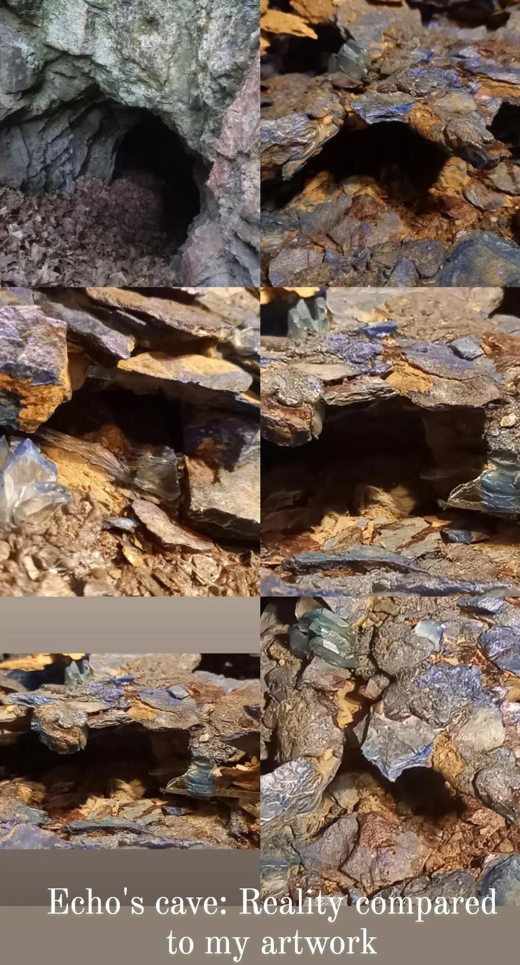 Ich ging mehrmals zu einer entlegenen Höhle, um hier passende Steine für "Echo´ s Höhle" zu suchen & um mich in die Atmosphäre der Geschichte von Echo & Narcissus einzufühlen (s. Textauszug weiter unten)